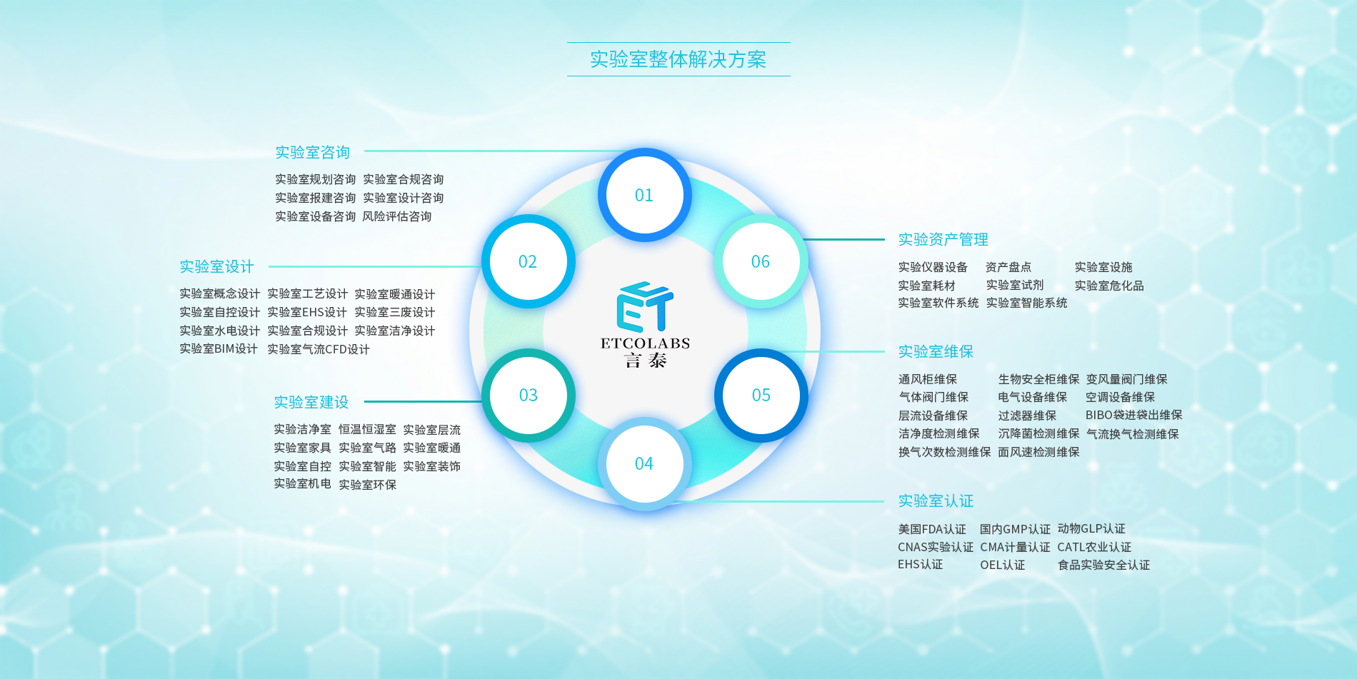 上海言泰科技有限公司是一家專業從事實驗室、潔凈室系統工程的公司,多年來,我們一直致力于國 內外科研單位、大專院校、醫藥、石油化工、電子等行業的實驗室建設;公司涉及的主要業務范圍包 括:新建實驗室的設計與施工、陳舊實驗室的改造與升級、現有實驗室的更新與拓展、實驗室家具系 統的生產與安裝、實驗室高純氣體管路的設計與施工、實驗室通風系統的設計與施工、實驗室廢氣/廢 液的處理、實驗室耗材、化學試劑、實驗室查看更多